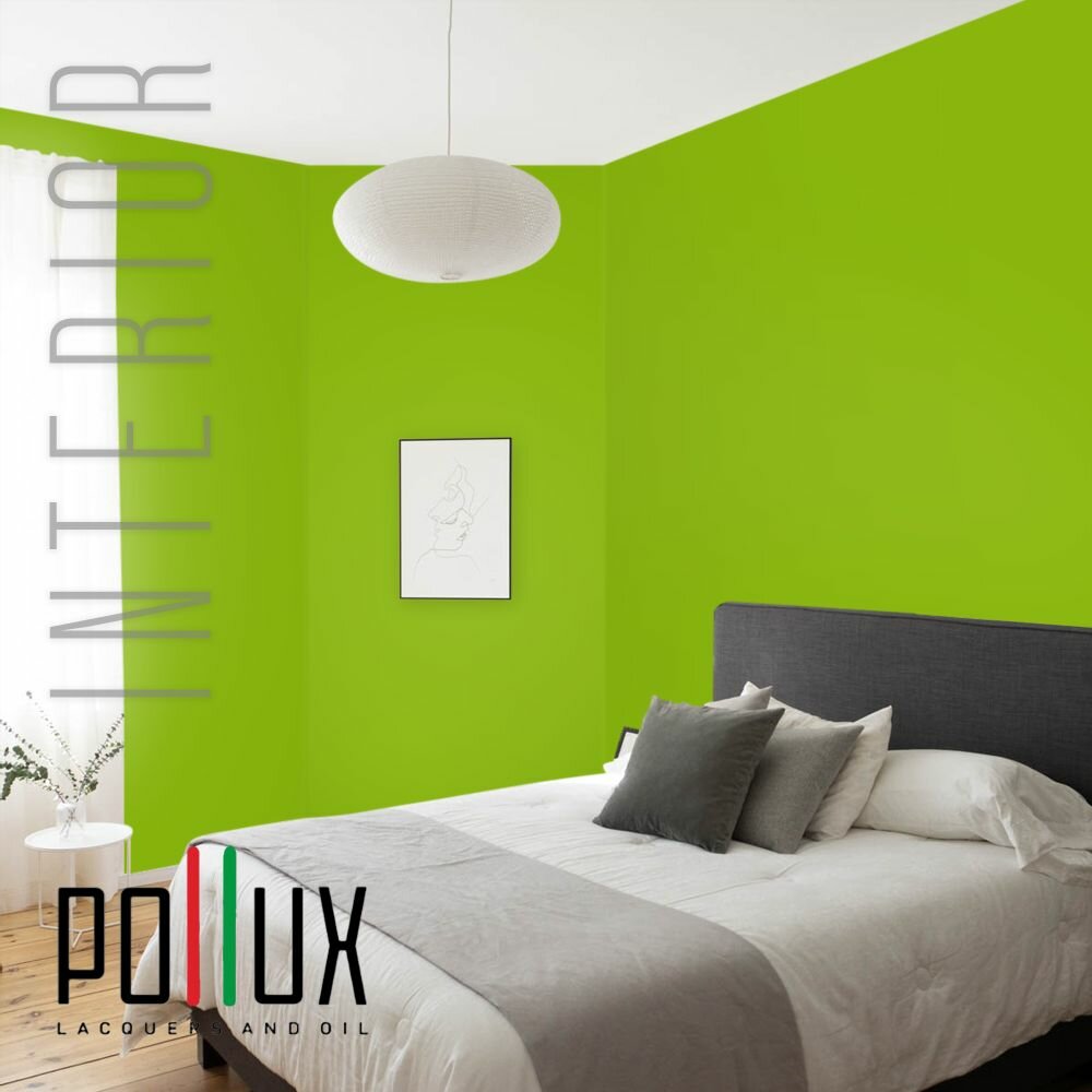 Краска моющаяся интерьерная для стен и потолков, Pollux INTERIOR без запаха, быстросохнущая, акриловая, матовое покрытие, цвет NCS S 0575-G40Y, 1л.
