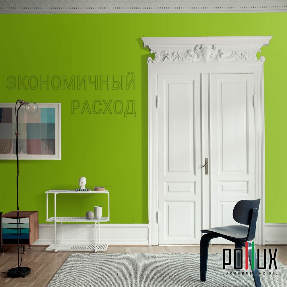 Краска моющаяся интерьерная для стен и потолков, Pollux INTERIOR без запаха, быстросохнущая, акриловая, матовое покрытие, цвет NCS S 1060-G40Y, 1л.
