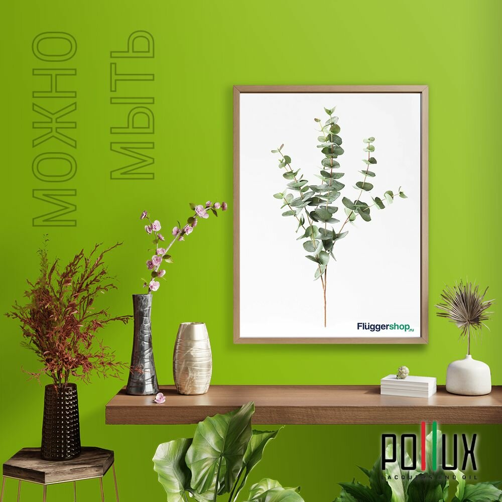 Краска моющаяся интерьерная для стен и потолков, Pollux INTERIOR без запаха, быстросохнущая, акриловая, матовое покрытие, цвет NCS S 5540-G40Y, 1л.