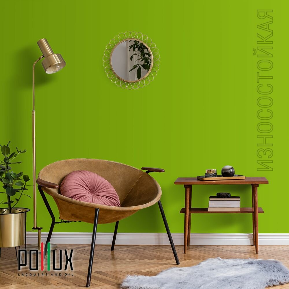 Краска моющаяся интерьерная для стен и потолков, Pollux INTERIOR без запаха, быстросохнущая, акриловая, матовое покрытие, цвет NCS S 0570-G40Y, 1л.