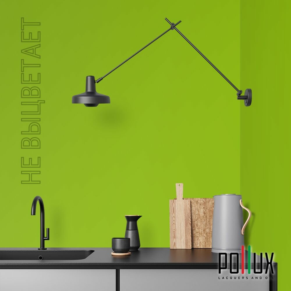 Краска моющаяся интерьерная для стен и потолков, Pollux INTERIOR без запаха, быстросохнущая, акриловая, матовое покрытие, цвет NCS S 0510-G40Y, 1л.