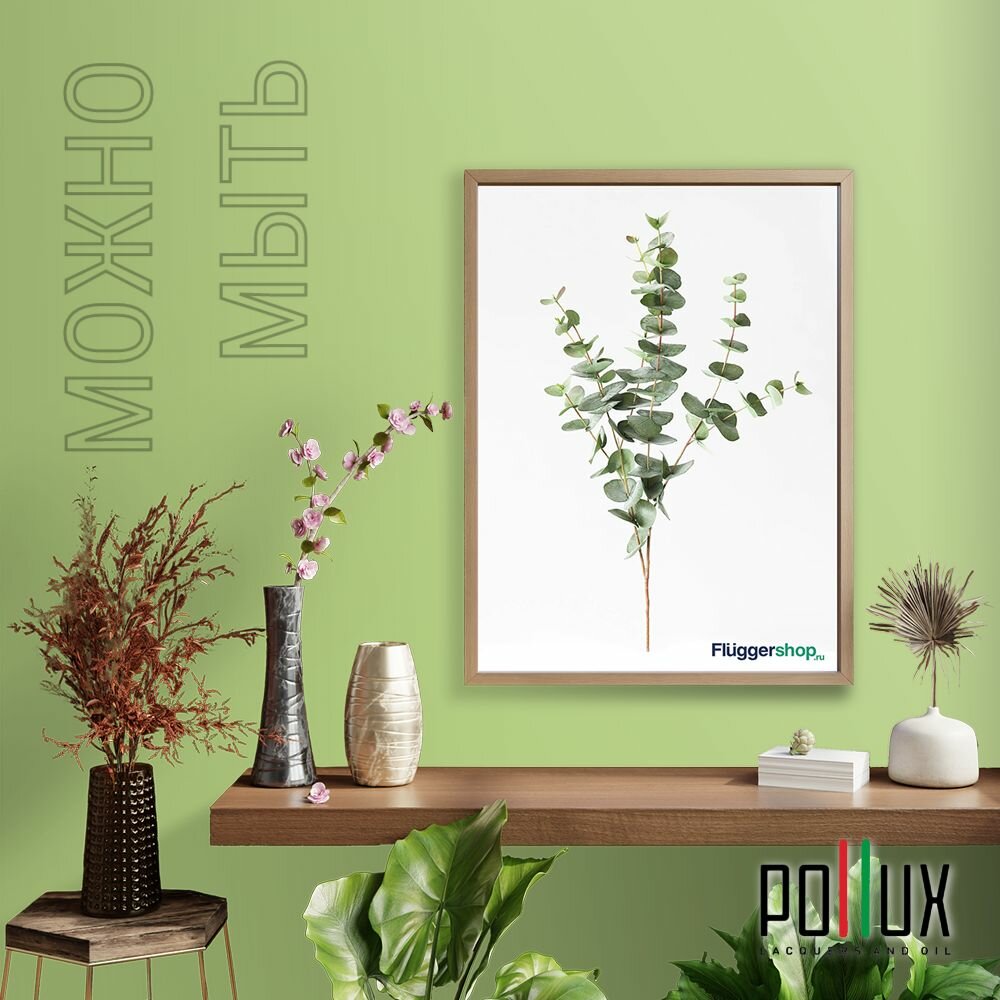 Краска моющаяся интерьерная для стен и потолков, Pollux INTERIOR без запаха, быстросохнущая, акриловая, матовое покрытие, цвет NCS S 5540-G40Y, 1л.
