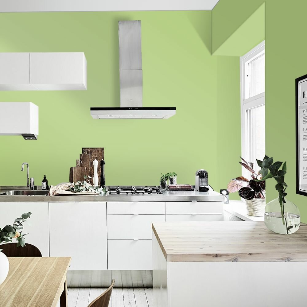 Краска моющаяся интерьерная для стен и потолков, Pollux INTERIOR без запаха, быстросохнущая, акриловая, матовое покрытие, цвет NCS S 0530-G40Y, 1л.