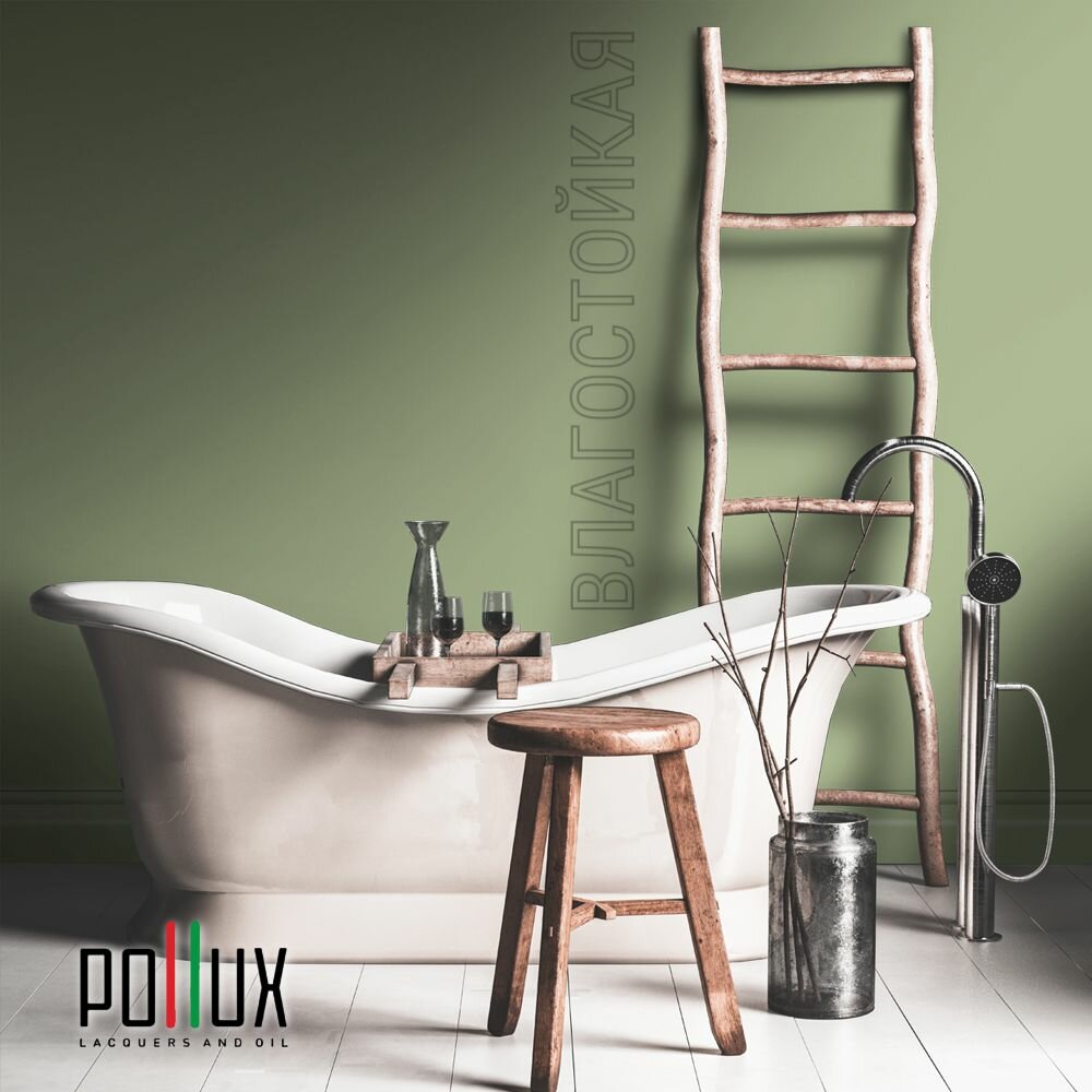 Краска моющаяся интерьерная для стен и потолков, Pollux INTERIOR без запаха, быстросохнущая, акриловая, матовое покрытие, цвет NCS S 1050-G40Y, 1л.