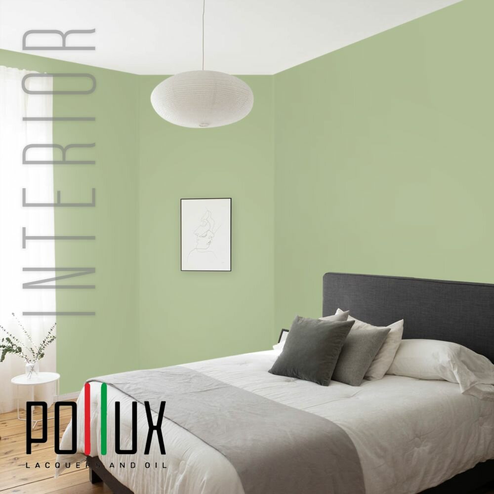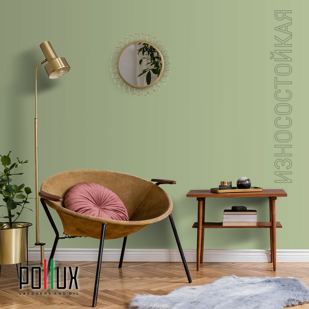 Краска моющаяся интерьерная для стен и потолков, Pollux INTERIOR без запаха, быстросохнущая, акриловая, матовое покрытие, цвет NCS S 3060-G40Y, 1л.