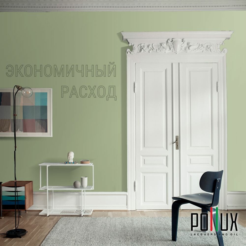 Краска моющаяся интерьерная для стен и потолков, Pollux INTERIOR без запаха, быстросохнущая, акриловая, матовое покрытие, цвет NCS S 4040-G40Y, 1л.