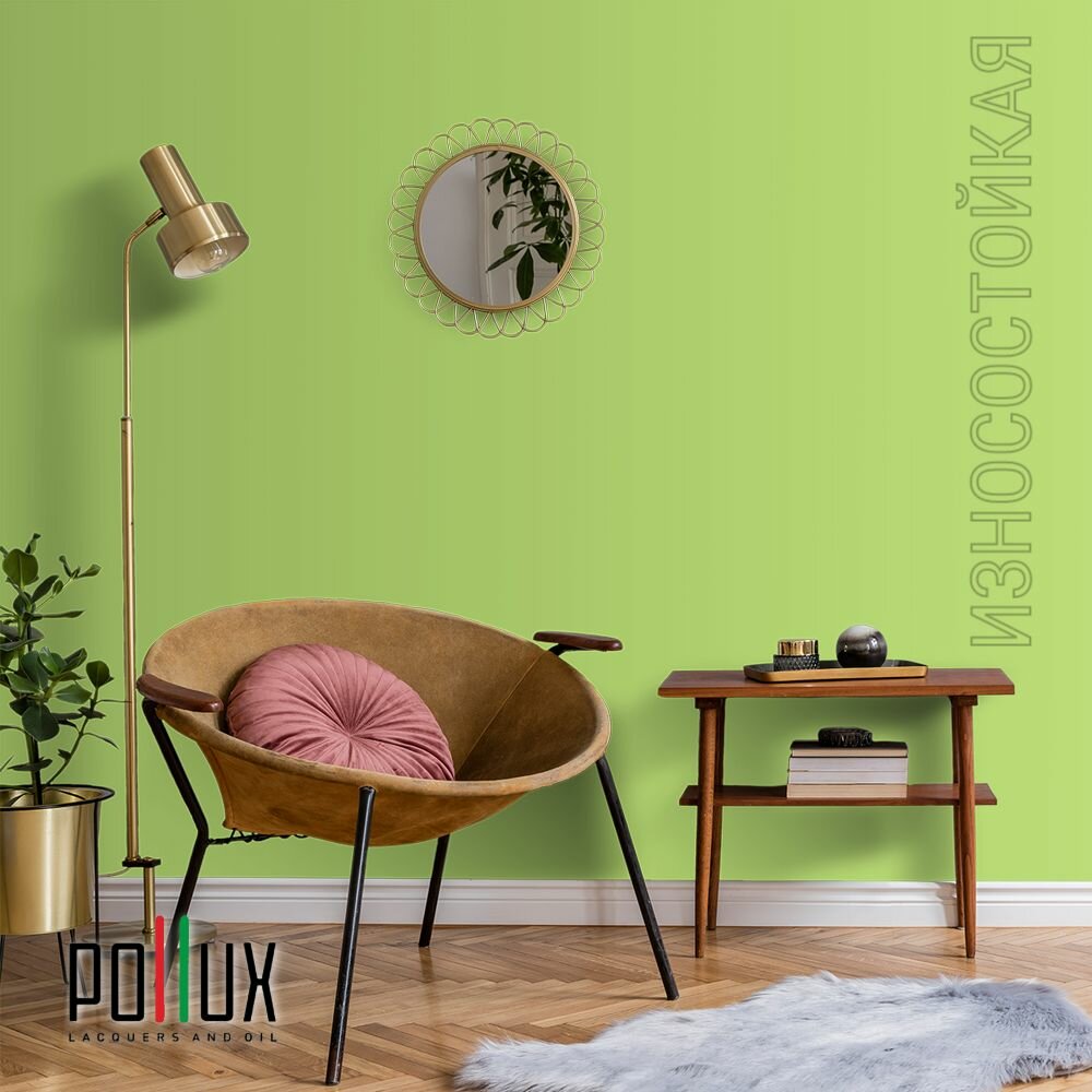 Краска моющаяся интерьерная для стен и потолков, Pollux INTERIOR без запаха, быстросохнущая, акриловая, матовое покрытие, цвет NCS S 0570-G40Y, 1л.