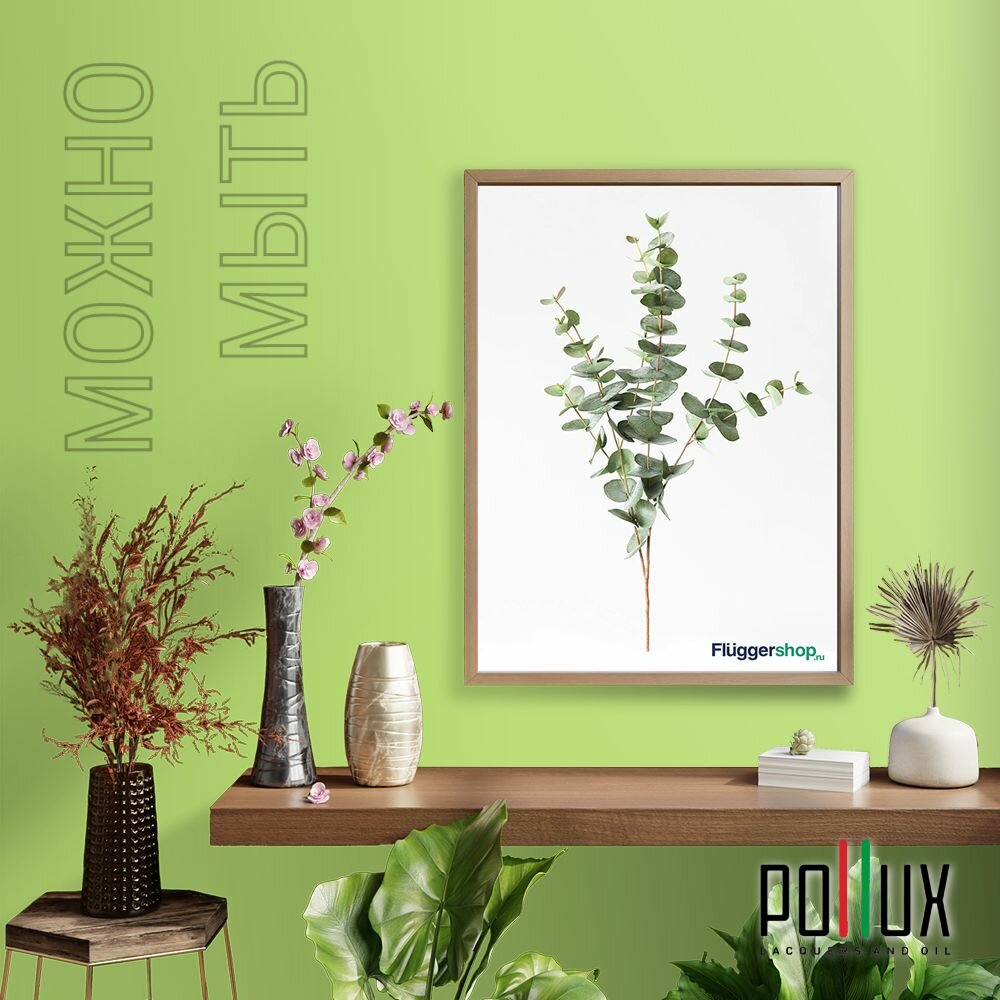 Краска моющаяся интерьерная для стен и потолков, Pollux INTERIOR без запаха, быстросохнущая, акриловая, матовое покрытие, цвет NCS S 3060-G40Y, 1л.
