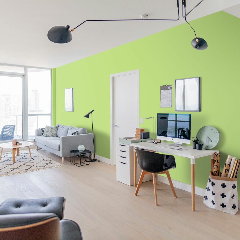 Краска моющаяся интерьерная для стен и потолков, Pollux INTERIOR без запаха, быстросохнущая, акриловая, матовое покрытие, цвет NCS S 0575-G40Y, 1л.