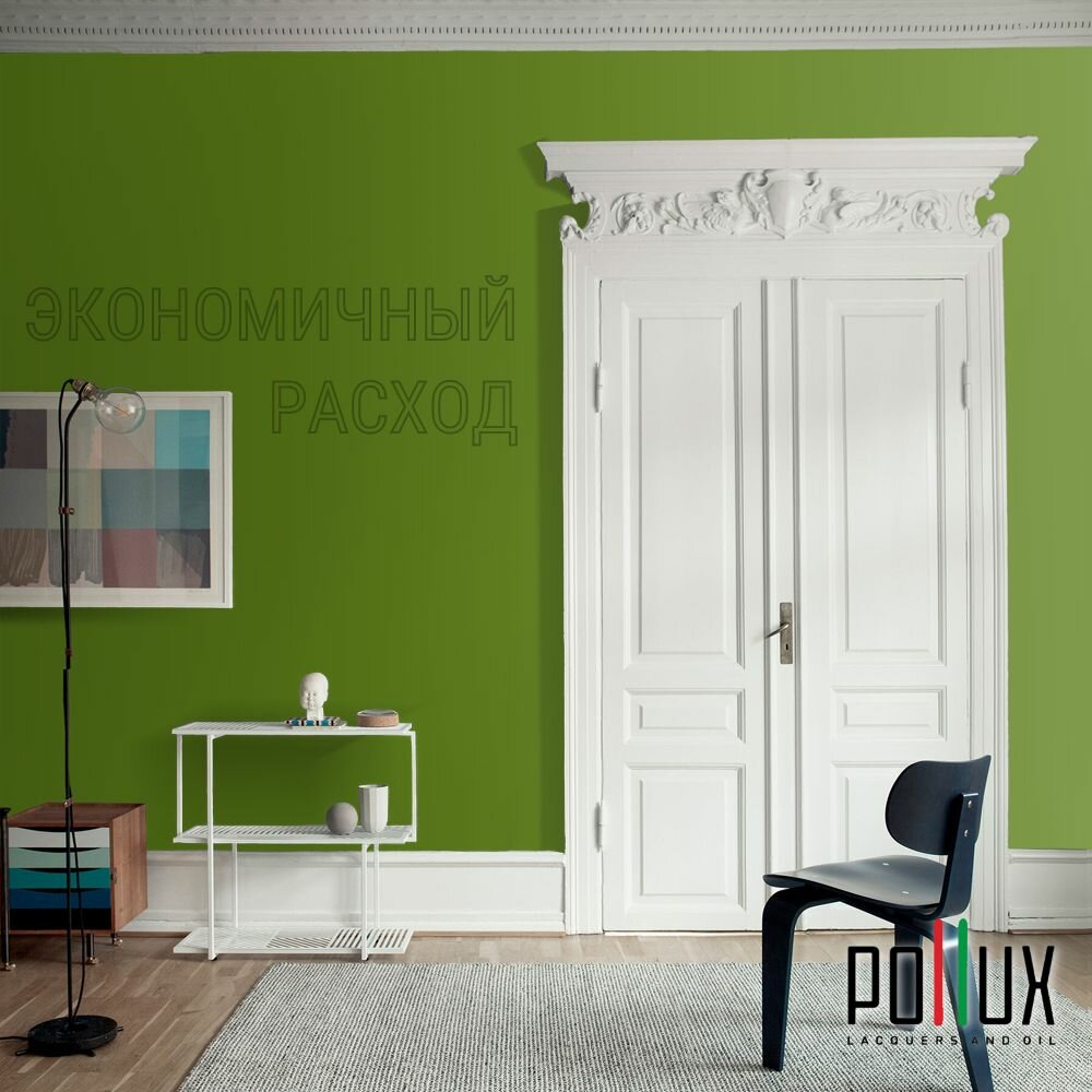 Краска моющаяся интерьерная для стен и потолков, Pollux INTERIOR без запаха, быстросохнущая, акриловая, матовое покрытие, цвет NCS S 1060-G40Y, 1л.