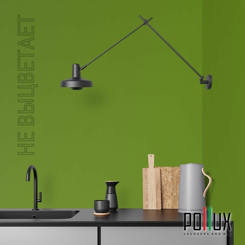 Краска моющаяся интерьерная для стен и потолков, Pollux INTERIOR без запаха, быстросохнущая, акриловая, матовое покрытие, цвет NCS S 1510-G40Y, 1л.