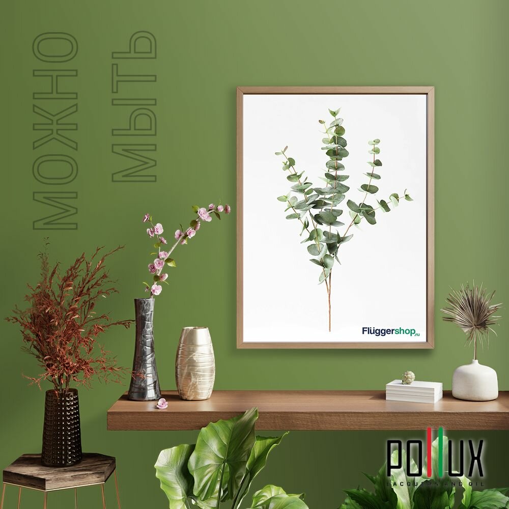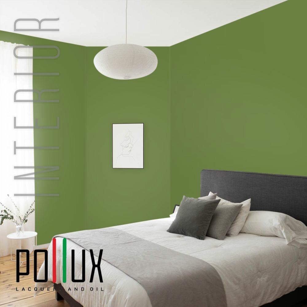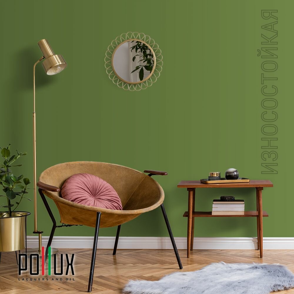 Краска моющаяся интерьерная для стен и потолков, Pollux INTERIOR без запаха, быстросохнущая, акриловая, матовое покрытие, цвет NCS S 3060-G40Y, 1л.