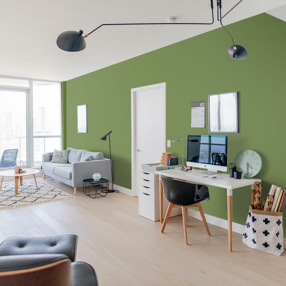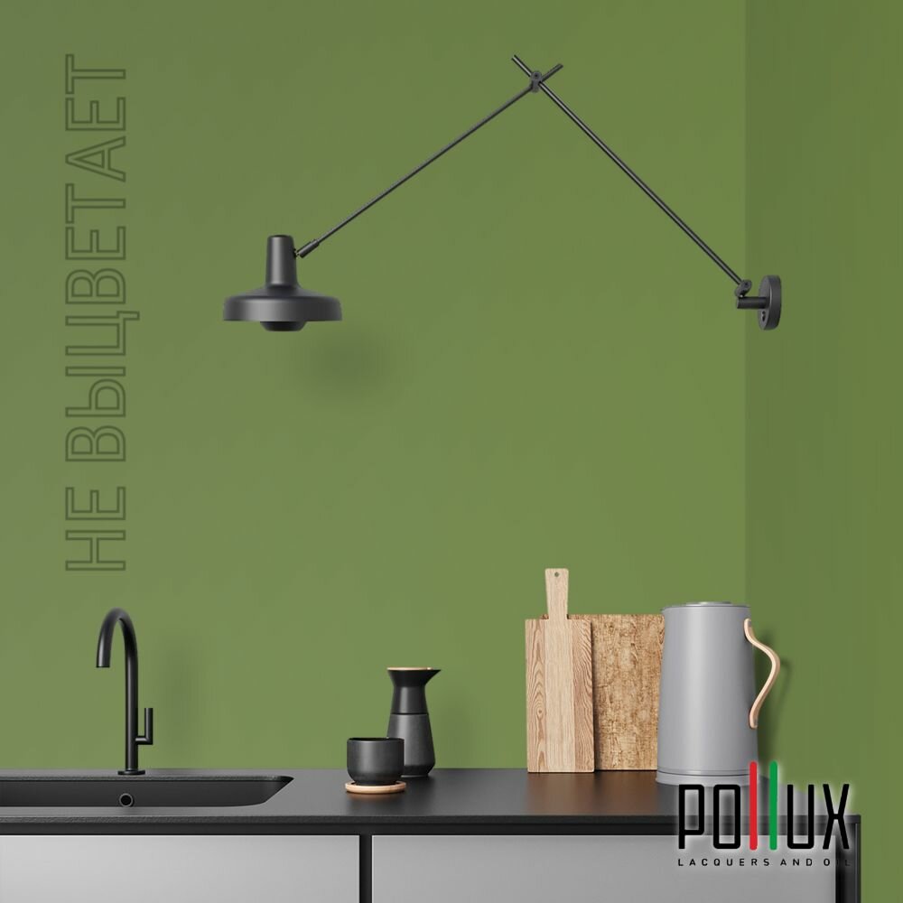 Краска моющаяся интерьерная для стен и потолков, Pollux INTERIOR без запаха, быстросохнущая, акриловая, матовое покрытие, цвет NCS S 4050-G40Y, 1л.