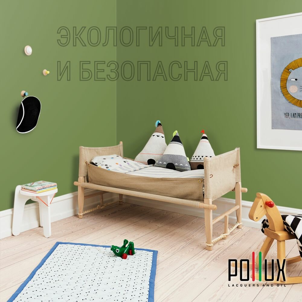 Краска моющаяся интерьерная для стен и потолков, Pollux INTERIOR без запаха, быстросохнущая, акриловая, матовое покрытие, цвет NCS S 5540-G40Y, 1л.