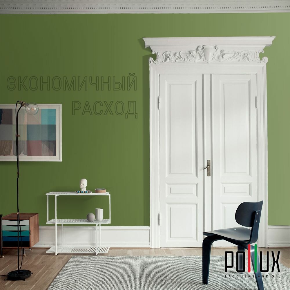 Краска моющаяся интерьерная для стен и потолков, Pollux INTERIOR без запаха, быстросохнущая, акриловая, матовое покрытие, цвет NCS S 1040-G40Y, 1л.