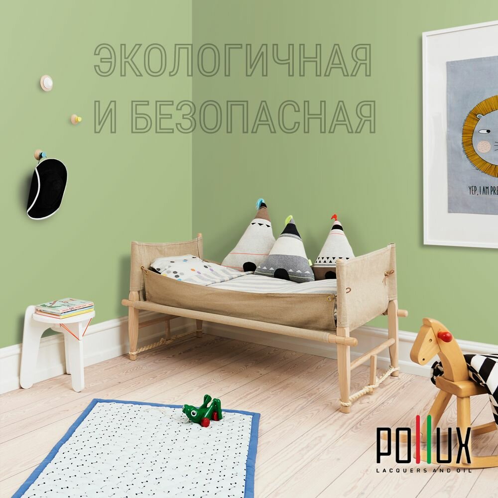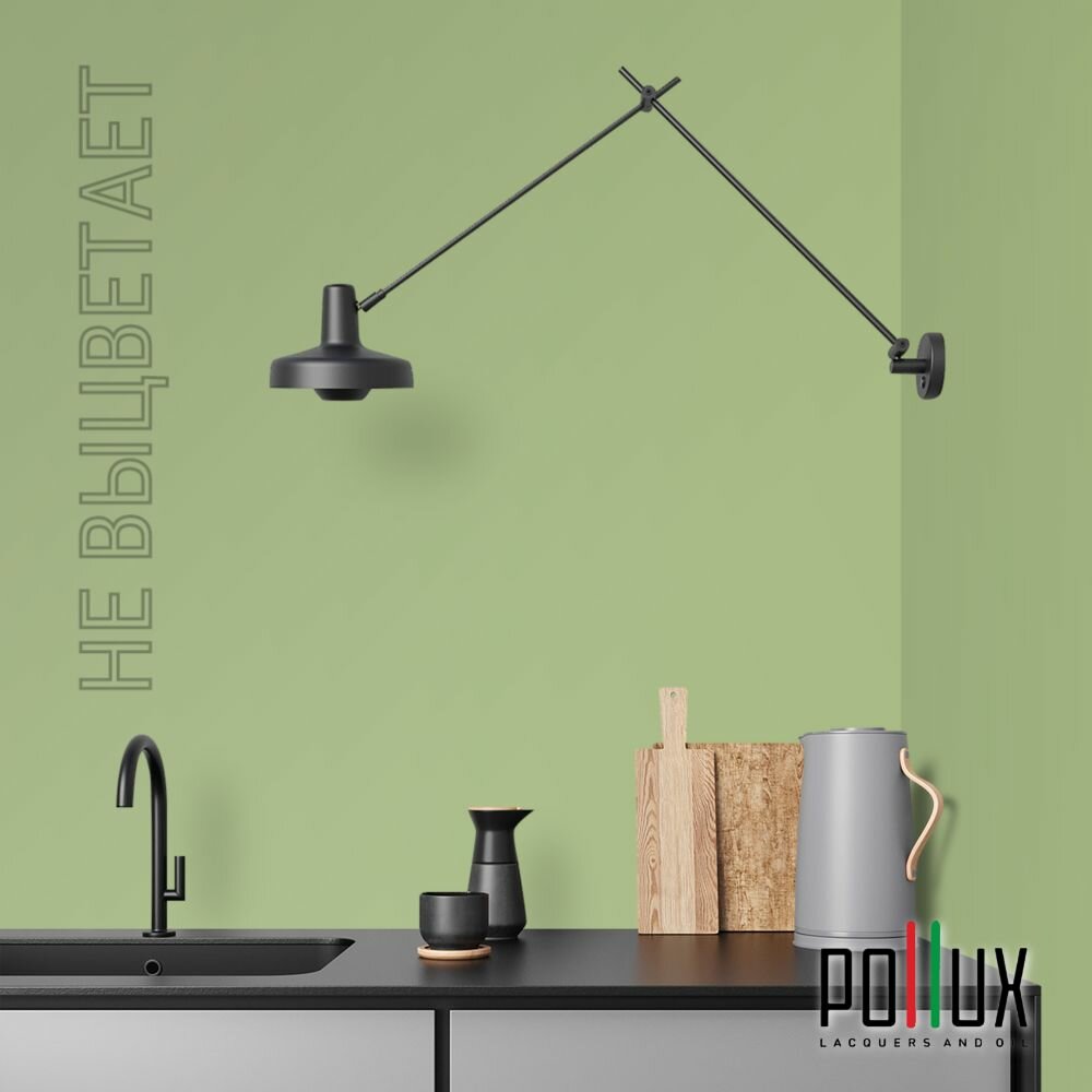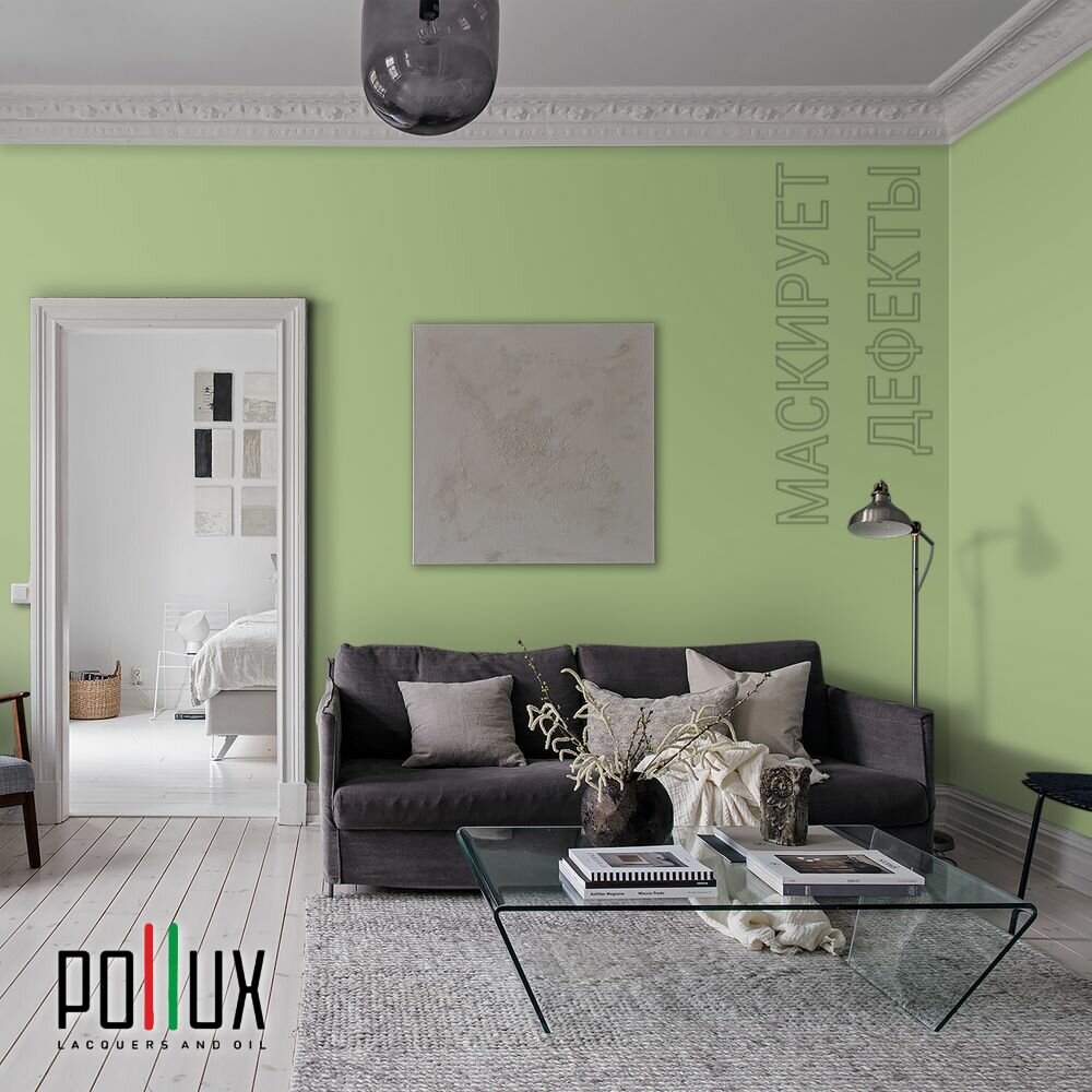Краска моющаяся интерьерная для стен и потолков, Pollux INTERIOR без запаха, быстросохнущая, акриловая, матовое покрытие, цвет NCS S 1510-G40Y, 1л.