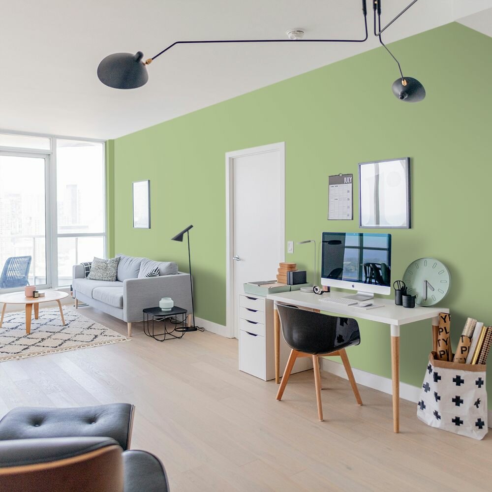 Краска моющаяся интерьерная для стен и потолков, Pollux INTERIOR без запаха, быстросохнущая, акриловая, матовое покрытие, цвет NCS S 0510-G40Y, 1л.