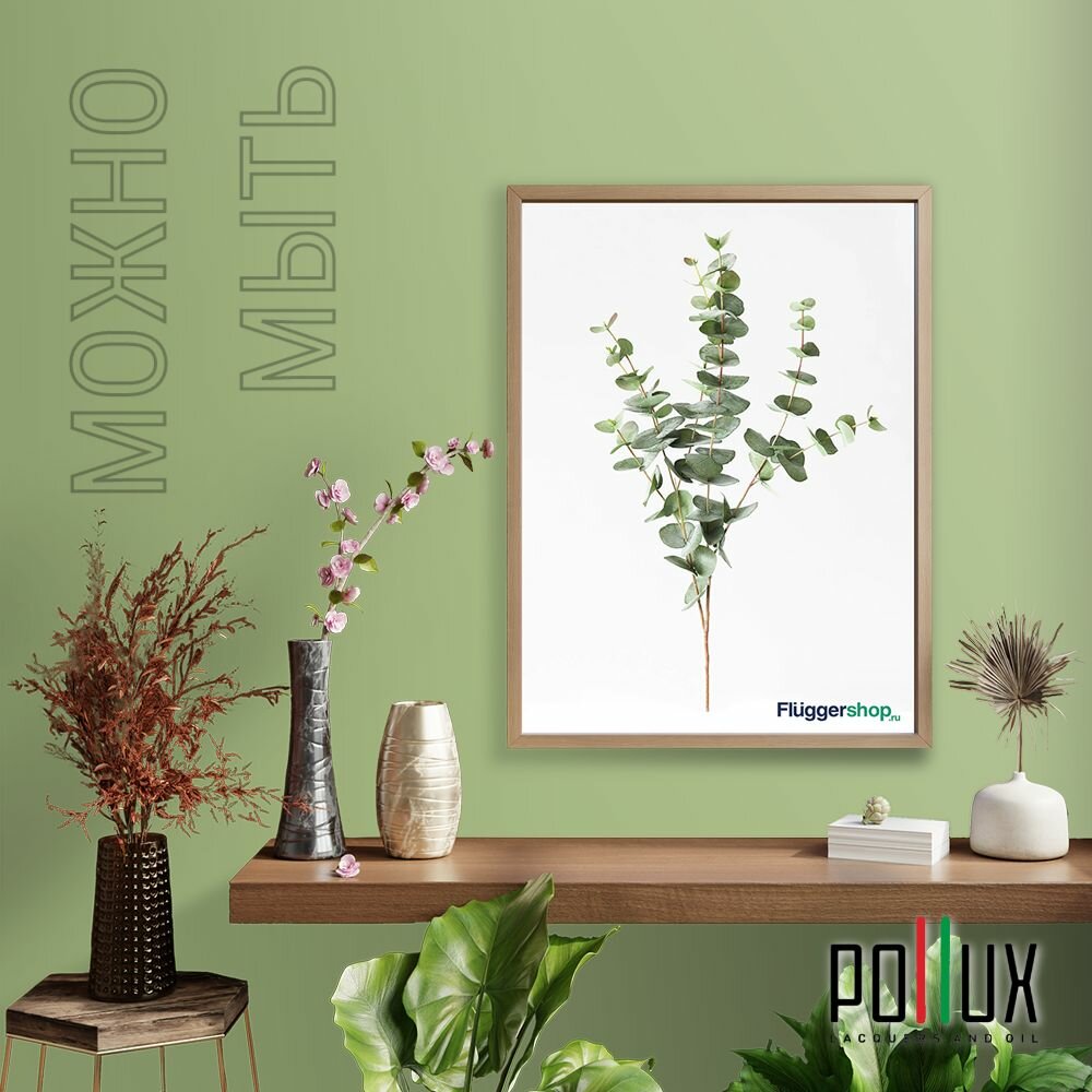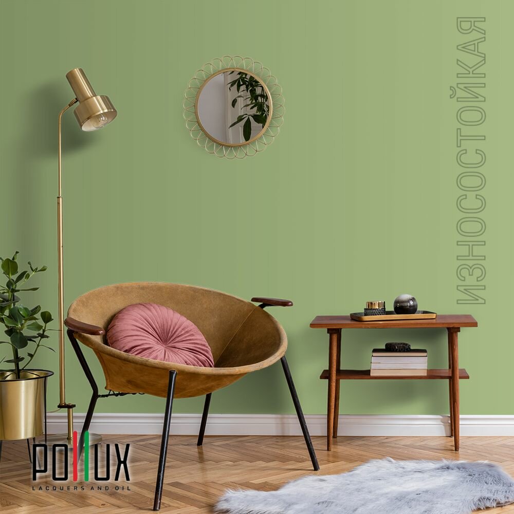 Краска моющаяся интерьерная для стен и потолков, Pollux INTERIOR без запаха, быстросохнущая, акриловая, матовое покрытие, цвет NCS S 5540-G40Y, 1л.