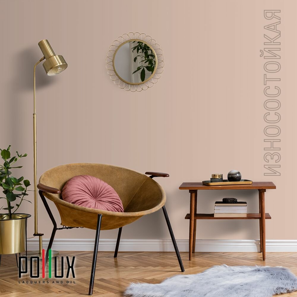 Краска моющаяся интерьерная для стен и потолков, Pollux INTERIOR без запаха, быстросохнущая, акриловая, матовое покрытие, цвет NCS S 0907-Y70R, 1л.