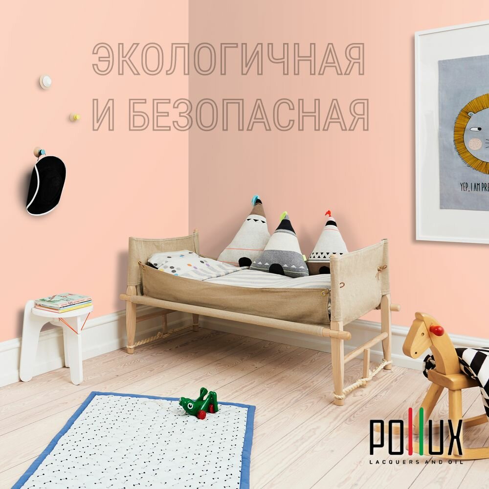 Краска моющаяся интерьерная для стен и потолков, Pollux INTERIOR без запаха, быстросохнущая, акриловая, матовое покрытие, цвет NCS S 5020-Y70R, 1л.