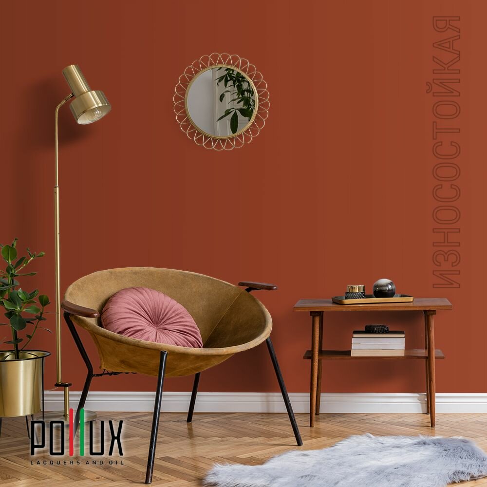 Краска моющаяся интерьерная для стен и потолков, Pollux INTERIOR без запаха, быстросохнущая, акриловая, матовое покрытие, цвет NCS S 3030-Y70R, 1л.