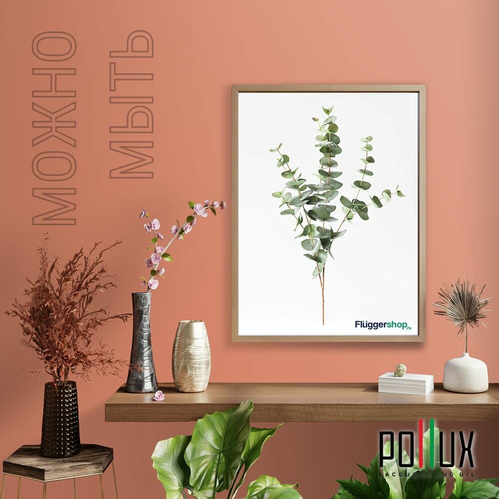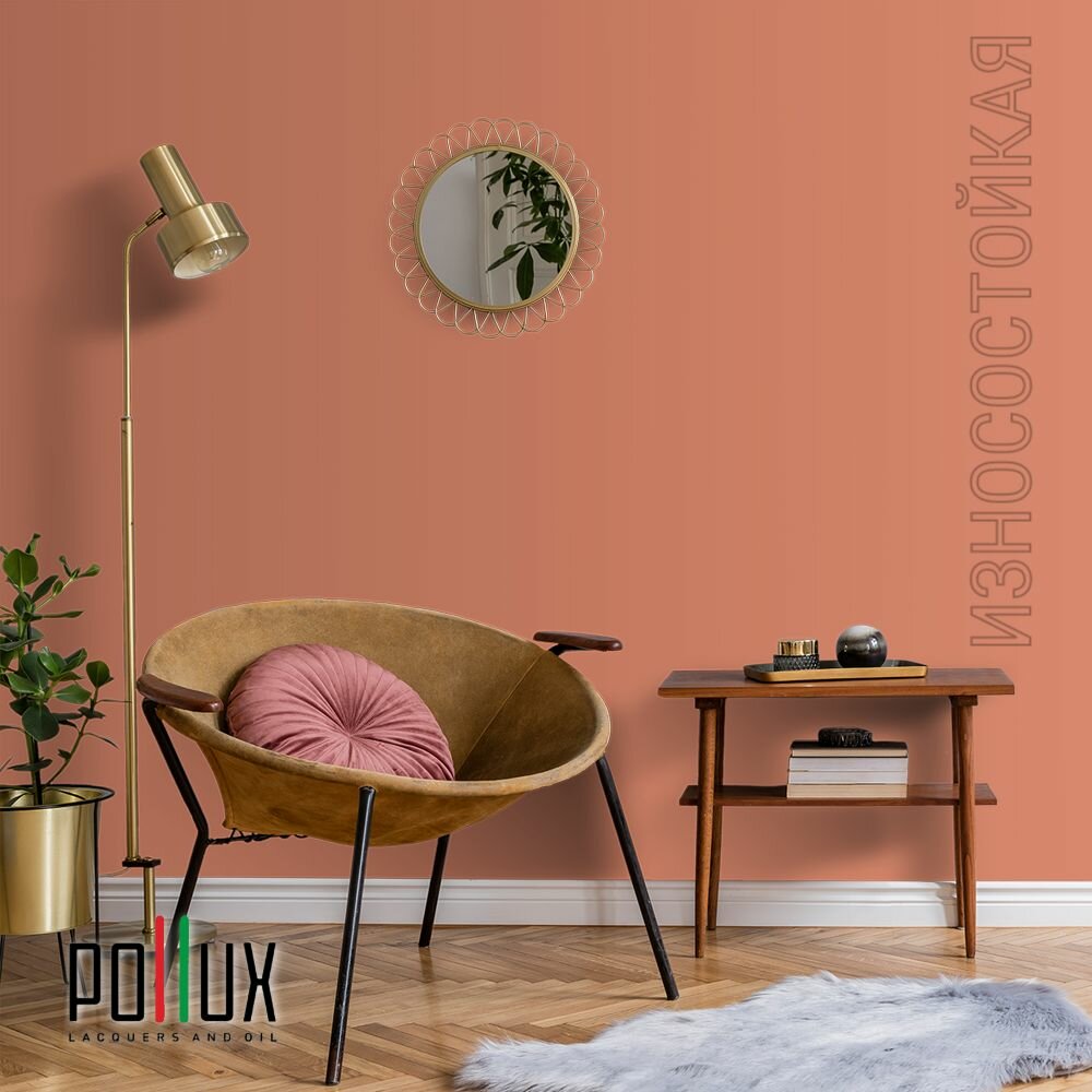 Краска моющаяся интерьерная для стен и потолков, Pollux INTERIOR без запаха, быстросохнущая, акриловая, матовое покрытие, цвет NCS S 3030-Y70R, 1л.