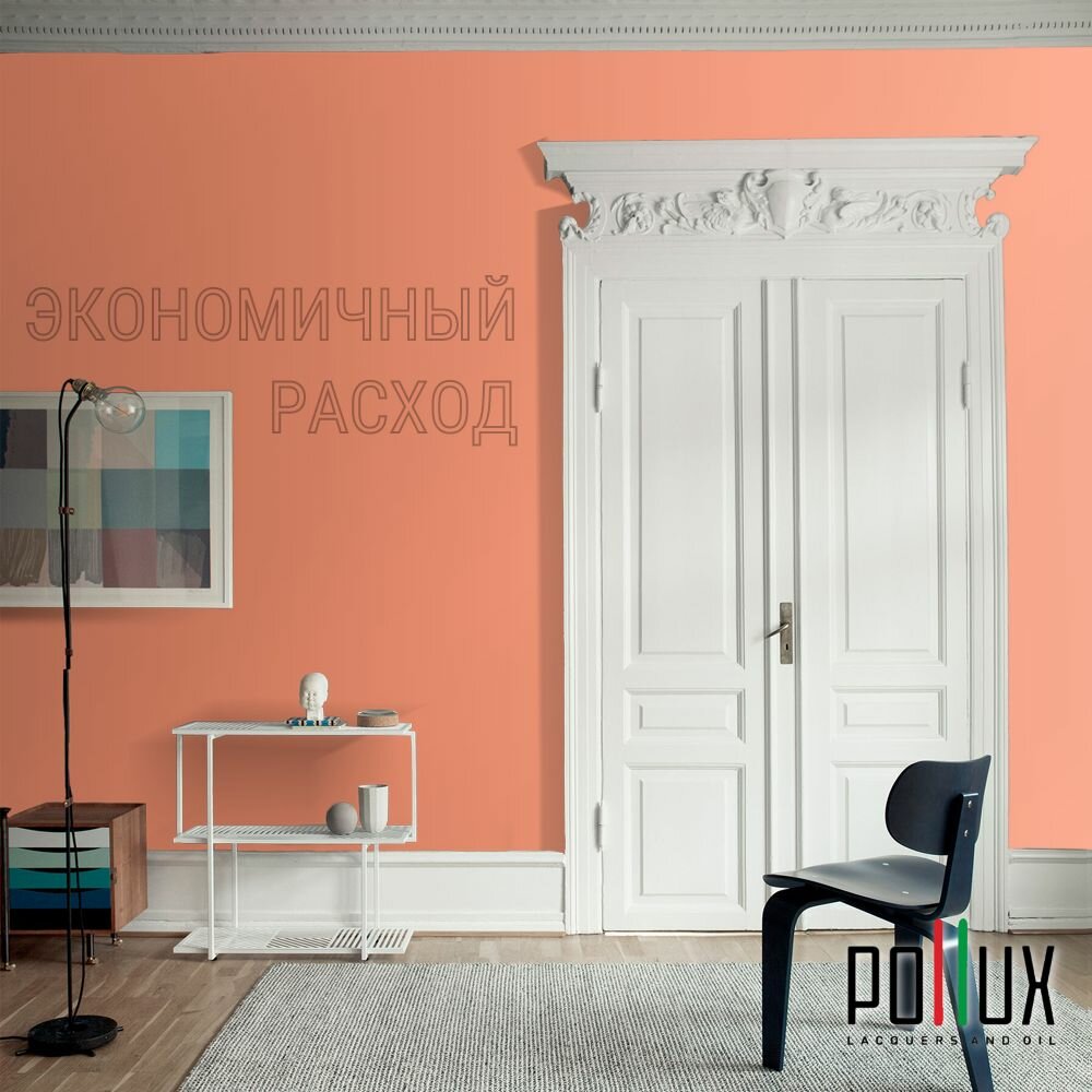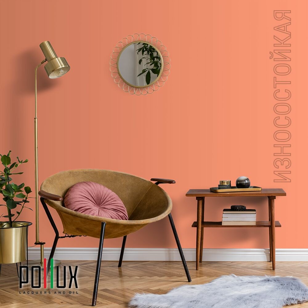 Краска моющаяся интерьерная для стен и потолков, Pollux INTERIOR без запаха, быстросохнущая, акриловая, матовое покрытие, цвет NCS S 3030-Y70R, 1л.