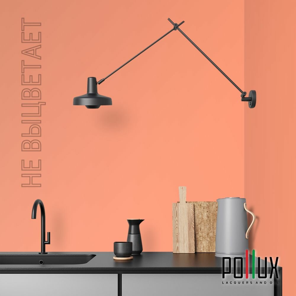 Краска моющаяся интерьерная для стен и потолков, Pollux INTERIOR без запаха, быстросохнущая, акриловая, матовое покрытие, цвет NCS S 3060-Y70R, 1л.