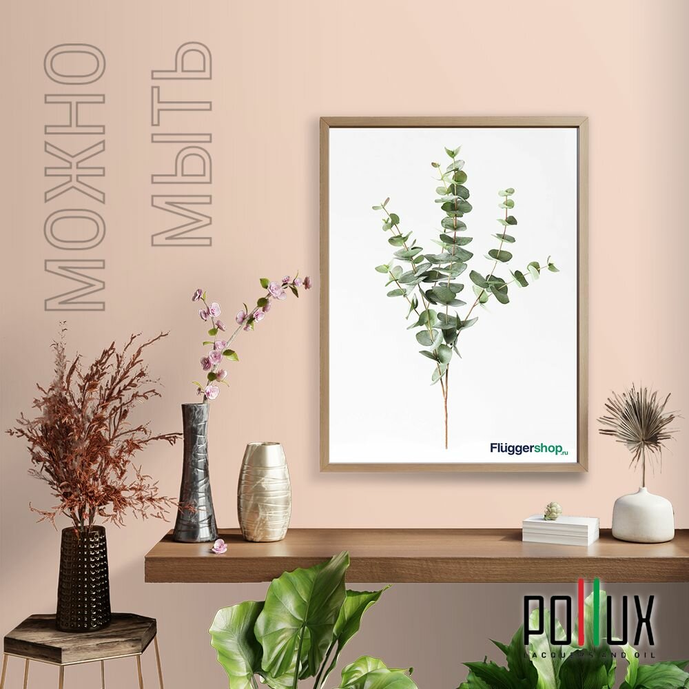 Краска моющаяся интерьерная для стен и потолков, Pollux INTERIOR без запаха, быстросохнущая, акриловая, матовое покрытие, цвет NCS S 3020-Y70R, 1л.