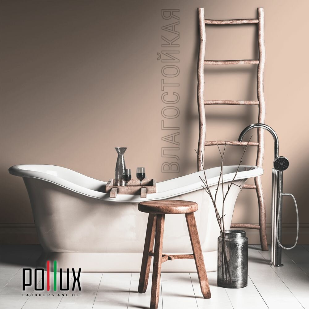 Краска моющаяся интерьерная для стен и потолков, Pollux INTERIOR без запаха, быстросохнущая, акриловая, матовое покрытие, цвет NCS S 7010-Y70R, 1л.