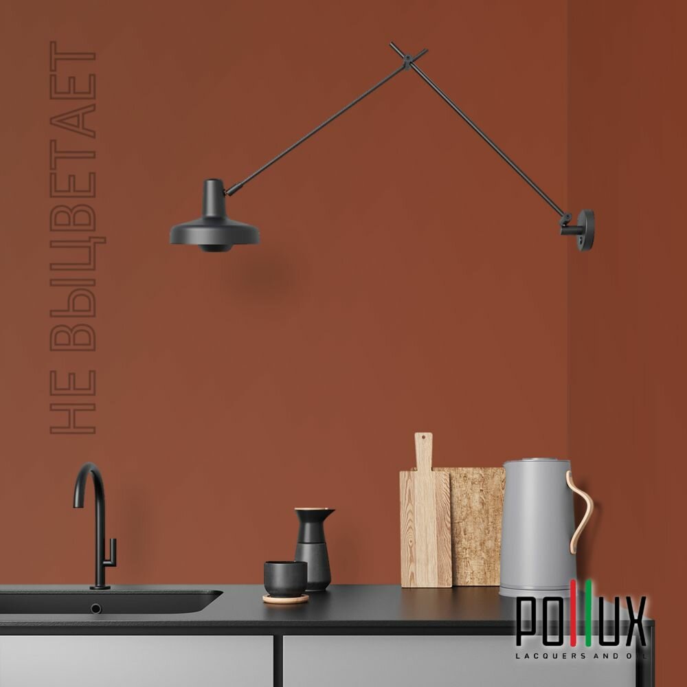 Краска моющаяся интерьерная для стен и потолков, Pollux INTERIOR без запаха, быстросохнущая, акриловая, матовое покрытие, цвет NCS S 3030-Y70R, 1л.