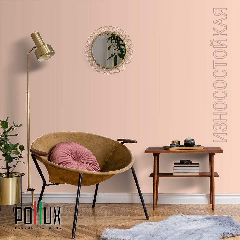 Краска моющаяся интерьерная для стен и потолков, Pollux INTERIOR без запаха, быстросохнущая, акриловая, матовое покрытие, цвет NCS S 3030-Y70R, 1л.