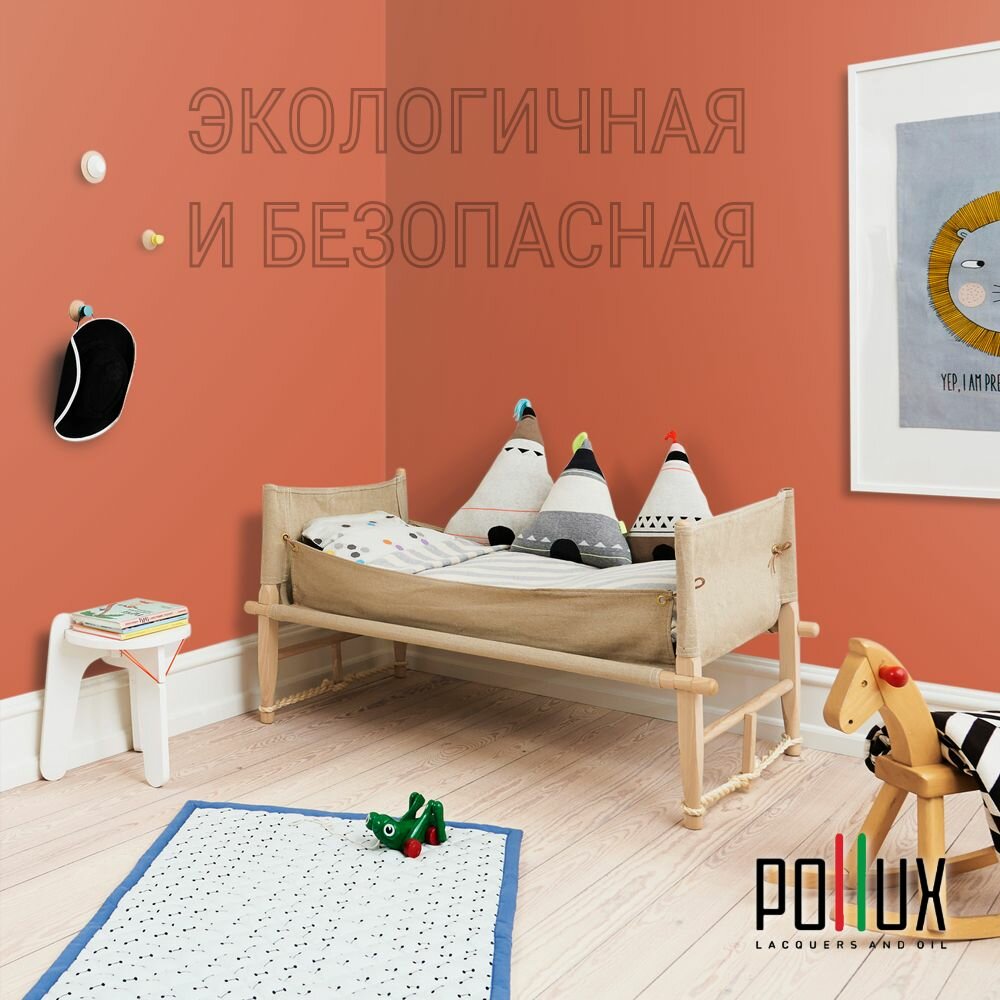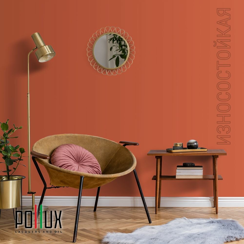 Краска моющаяся интерьерная для стен и потолков, Pollux INTERIOR без запаха, быстросохнущая, акриловая, матовое покрытие, цвет NCS S 3030-Y70R, 1л.