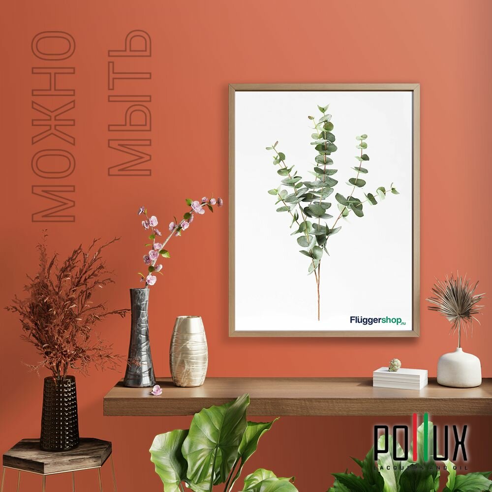 Краска моющаяся интерьерная для стен и потолков, Pollux INTERIOR без запаха, быстросохнущая, акриловая, матовое покрытие, цвет NCS S 3060-Y70R, 1л.