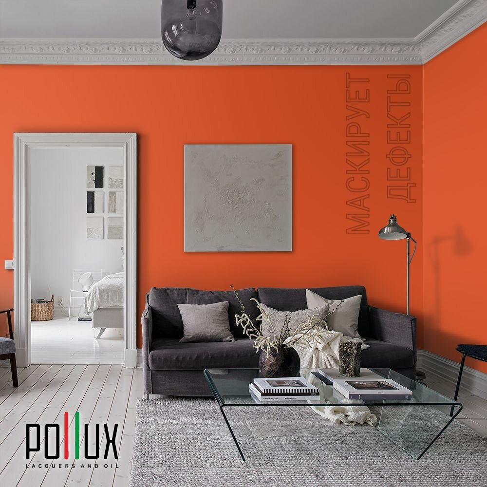 Краска моющаяся интерьерная для стен и потолков, Pollux INTERIOR без запаха, быстросохнущая, акриловая, матовое покрытие, цвет NCS S 3030-Y70R, 1л.