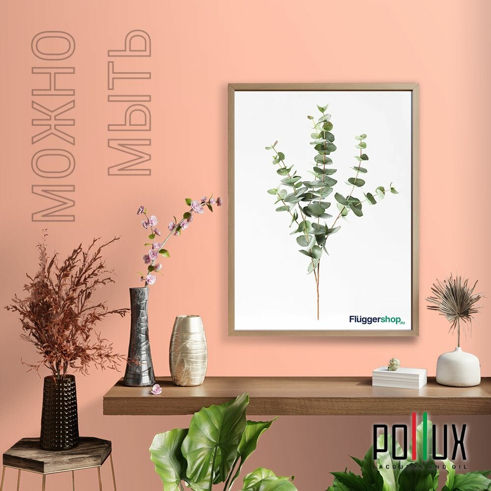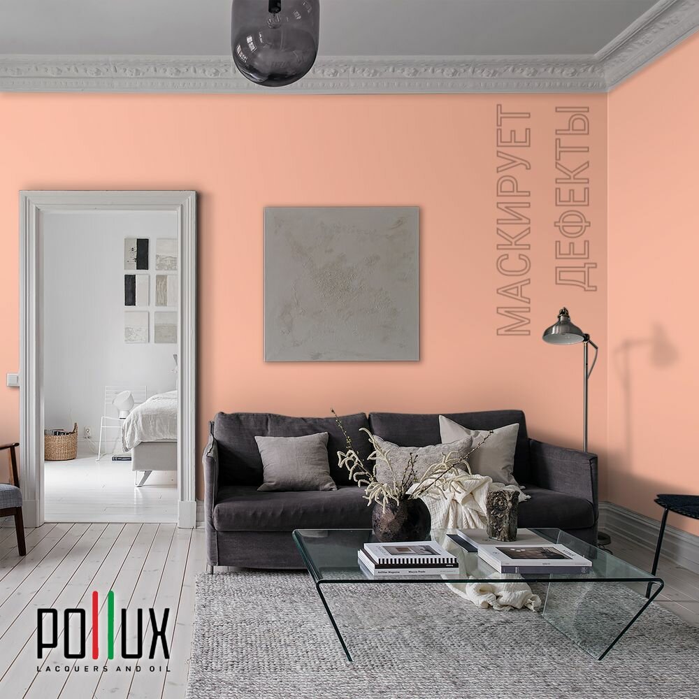 Краска моющаяся интерьерная для стен и потолков, Pollux INTERIOR без запаха, быстросохнущая, акриловая, матовое покрытие, цвет NCS S 3060-Y70R, 1л.