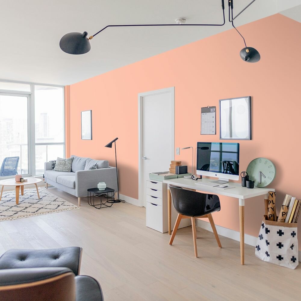 Краска моющаяся интерьерная для стен и потолков, Pollux INTERIOR без запаха, быстросохнущая, акриловая, матовое покрытие, цвет NCS S 2060-Y70R, 1л.