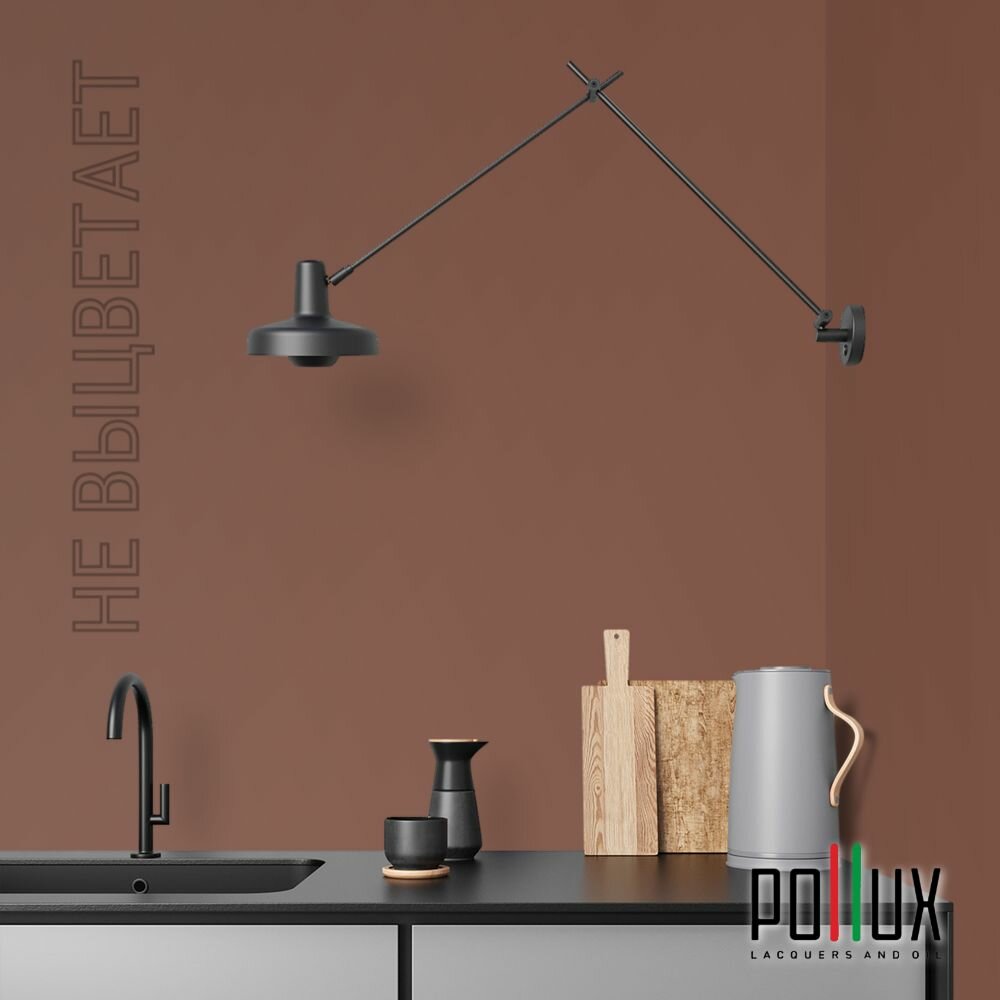 Краска моющаяся интерьерная для стен и потолков, Pollux INTERIOR без запаха, быстросохнущая, акриловая, матовое покрытие, цвет NCS S 8010-Y70R, 1л.