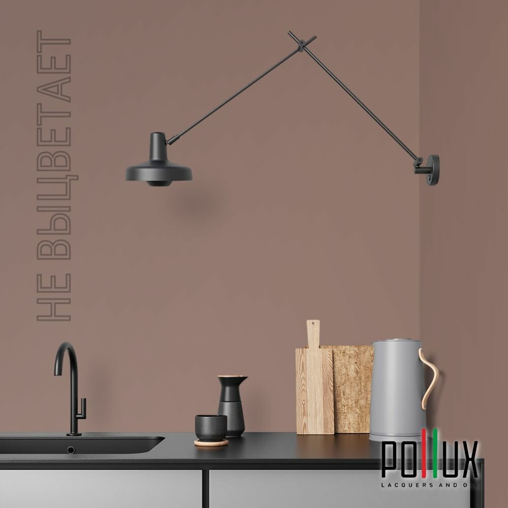 Краска моющаяся интерьерная для стен и потолков, Pollux INTERIOR без запаха, быстросохнущая, акриловая, матовое покрытие, цвет NCS S 7020-Y70R, 1л.