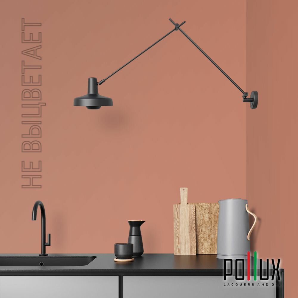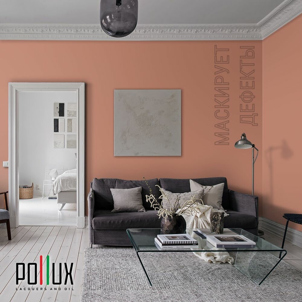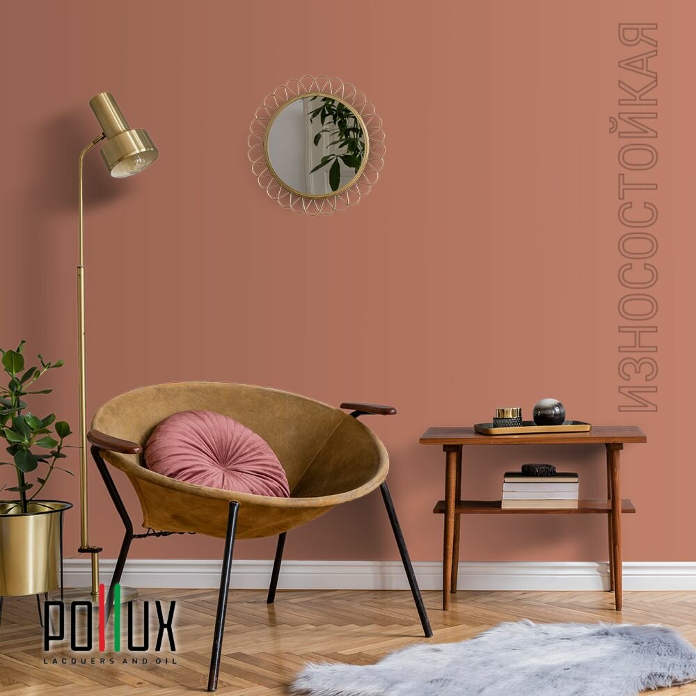 Краска моющаяся интерьерная для стен и потолков, Pollux INTERIOR без запаха, быстросохнущая, акриловая, матовое покрытие, цвет NCS S 3030-Y70R, 1л.