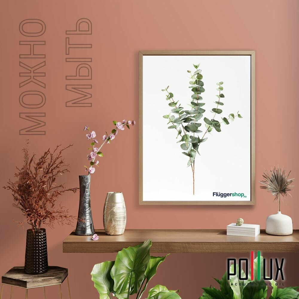 Краска моющаяся интерьерная для стен и потолков, Pollux INTERIOR без запаха, быстросохнущая, акриловая, матовое покрытие, цвет NCS S 3060-Y70R, 1л.