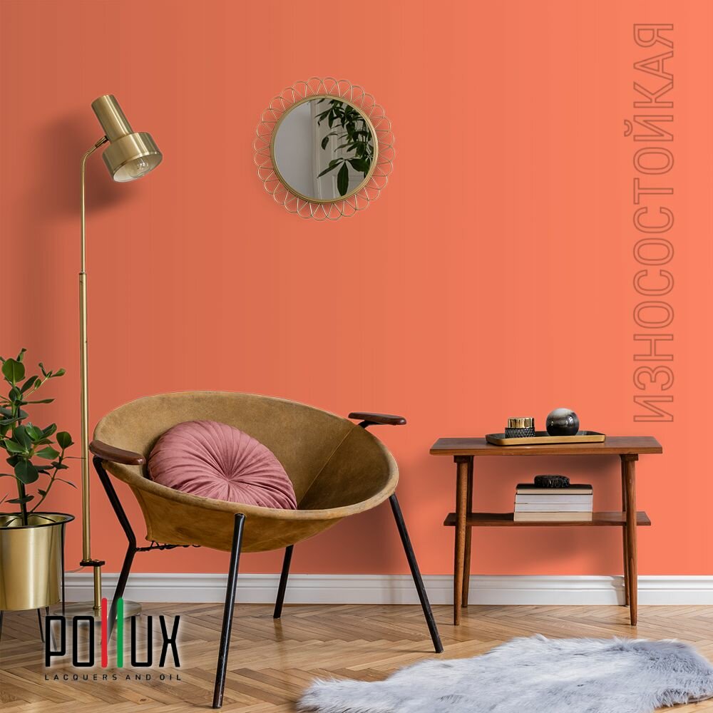 Краска моющаяся интерьерная для стен и потолков, Pollux INTERIOR без запаха, быстросохнущая, акриловая, матовое покрытие, цвет NCS S 3030-Y70R, 1л.