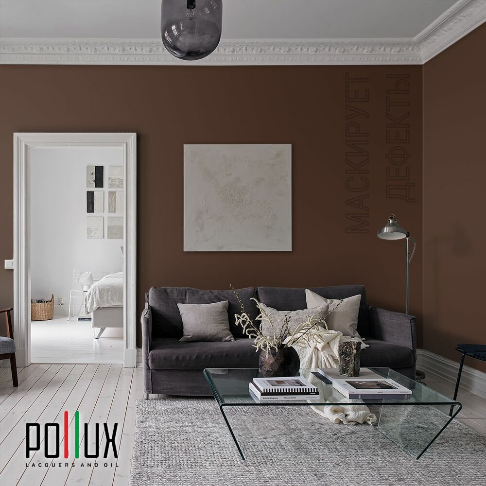 Краска моющаяся интерьерная для стен и потолков, Pollux INTERIOR без запаха, быстросохнущая, акриловая, матовое покрытие, цвет NCS S 3010-Y70R, 1л.
