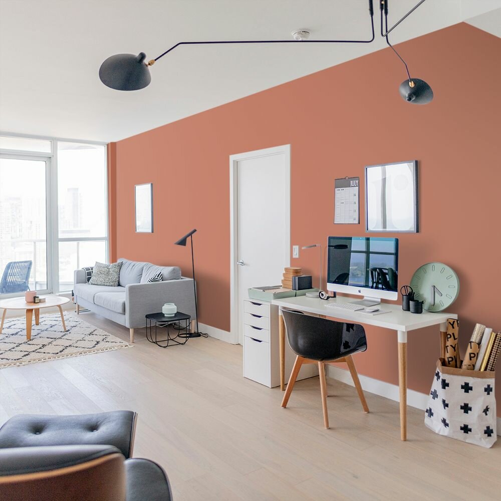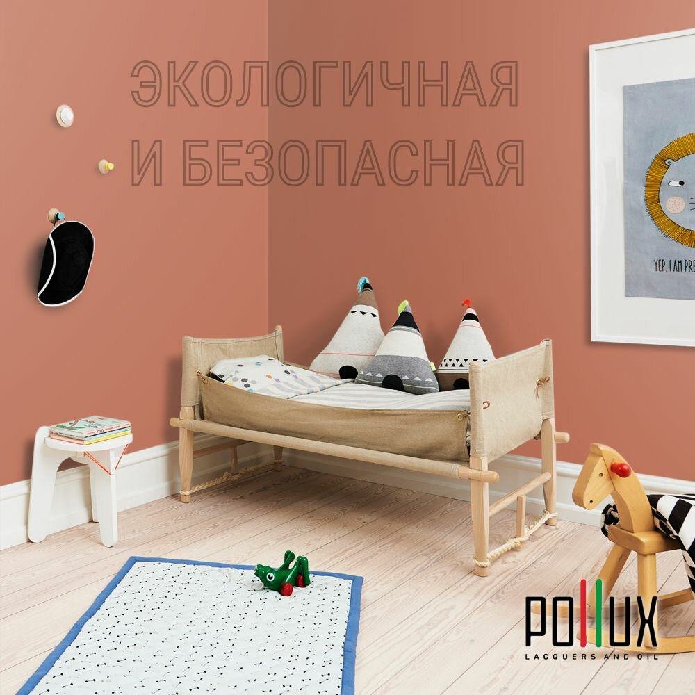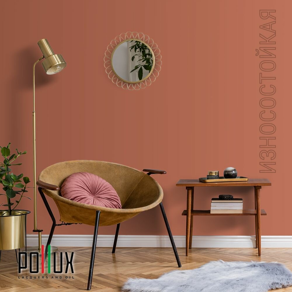 Краска моющаяся интерьерная для стен и потолков, Pollux INTERIOR без запаха, быстросохнущая, акриловая, матовое покрытие, цвет NCS S 3030-Y70R, 1л.