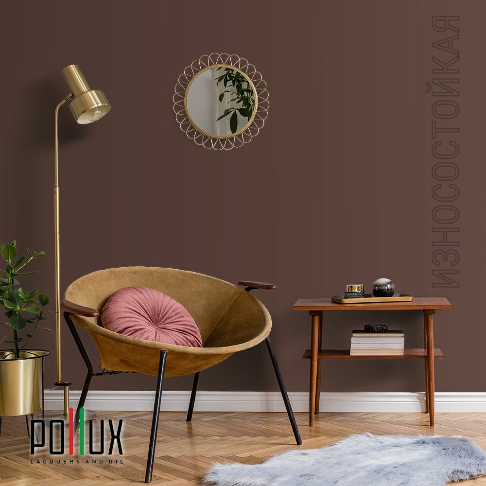 Краска моющаяся интерьерная для стен и потолков, Pollux INTERIOR без запаха, быстросохнущая, акриловая, матовое покрытие, цвет NCS S 3010-Y70R, 1л.