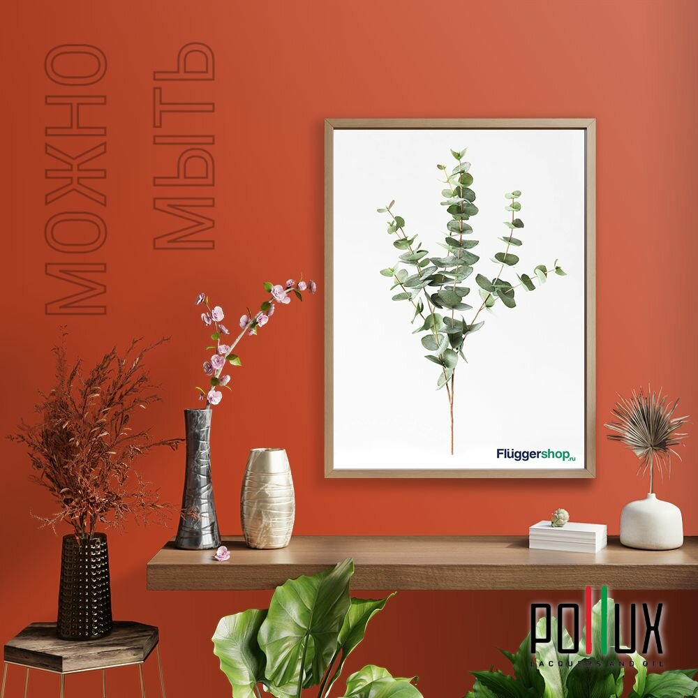 Краска моющаяся интерьерная для стен и потолков, Pollux INTERIOR без запаха, быстросохнущая, акриловая, матовое покрытие, цвет NCS S 3060-Y70R, 1л.