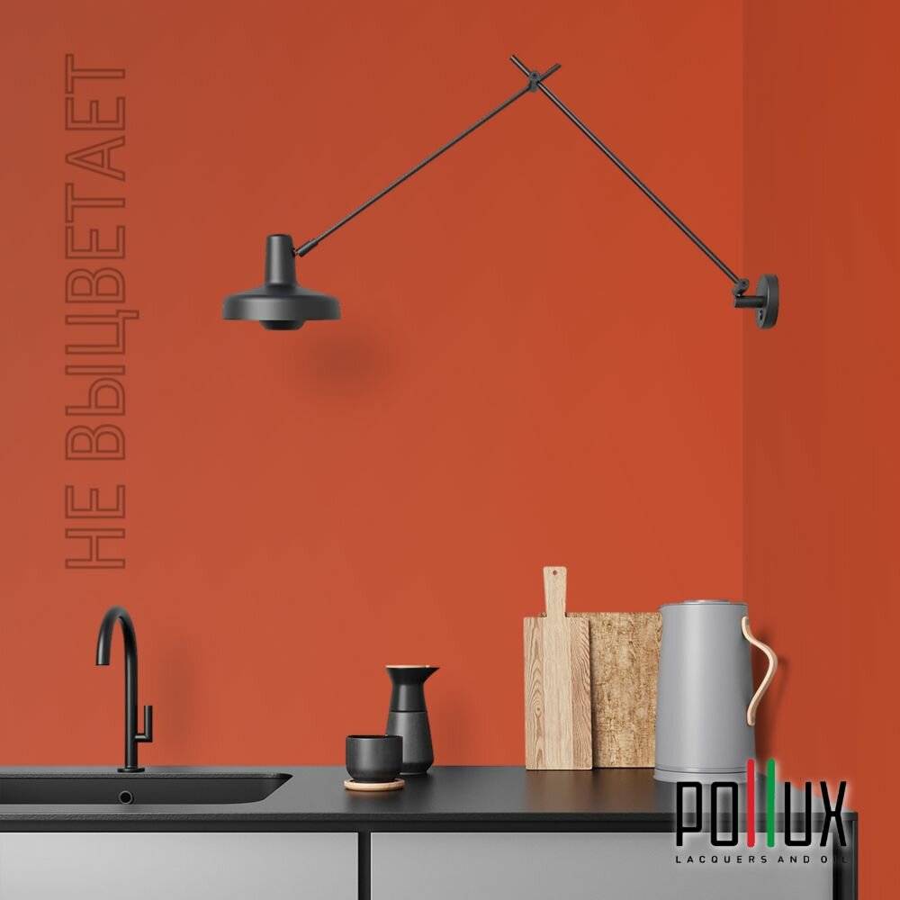 Краска моющаяся интерьерная для стен и потолков, Pollux INTERIOR без запаха, быстросохнущая, акриловая, матовое покрытие, цвет NCS S 3030-Y70R, 1л.