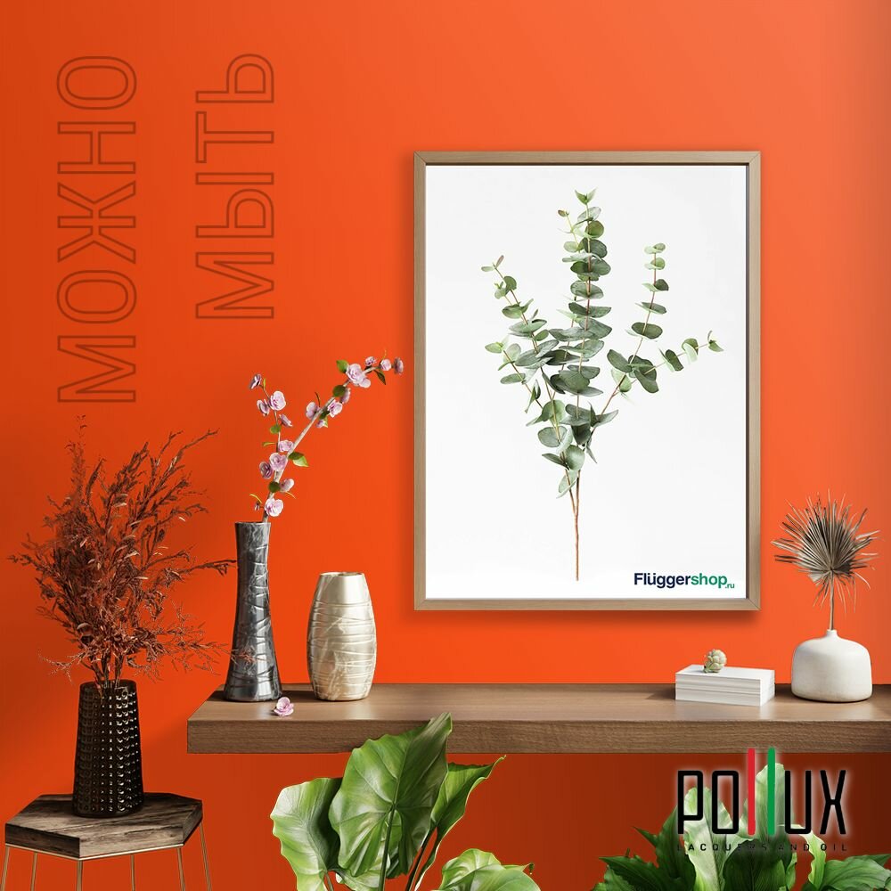 Краска моющаяся интерьерная для стен и потолков, Pollux INTERIOR без запаха, быстросохнущая, акриловая, матовое покрытие, цвет NCS S 3060-Y70R, 1л.
