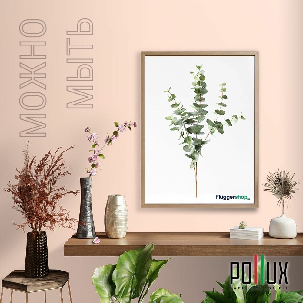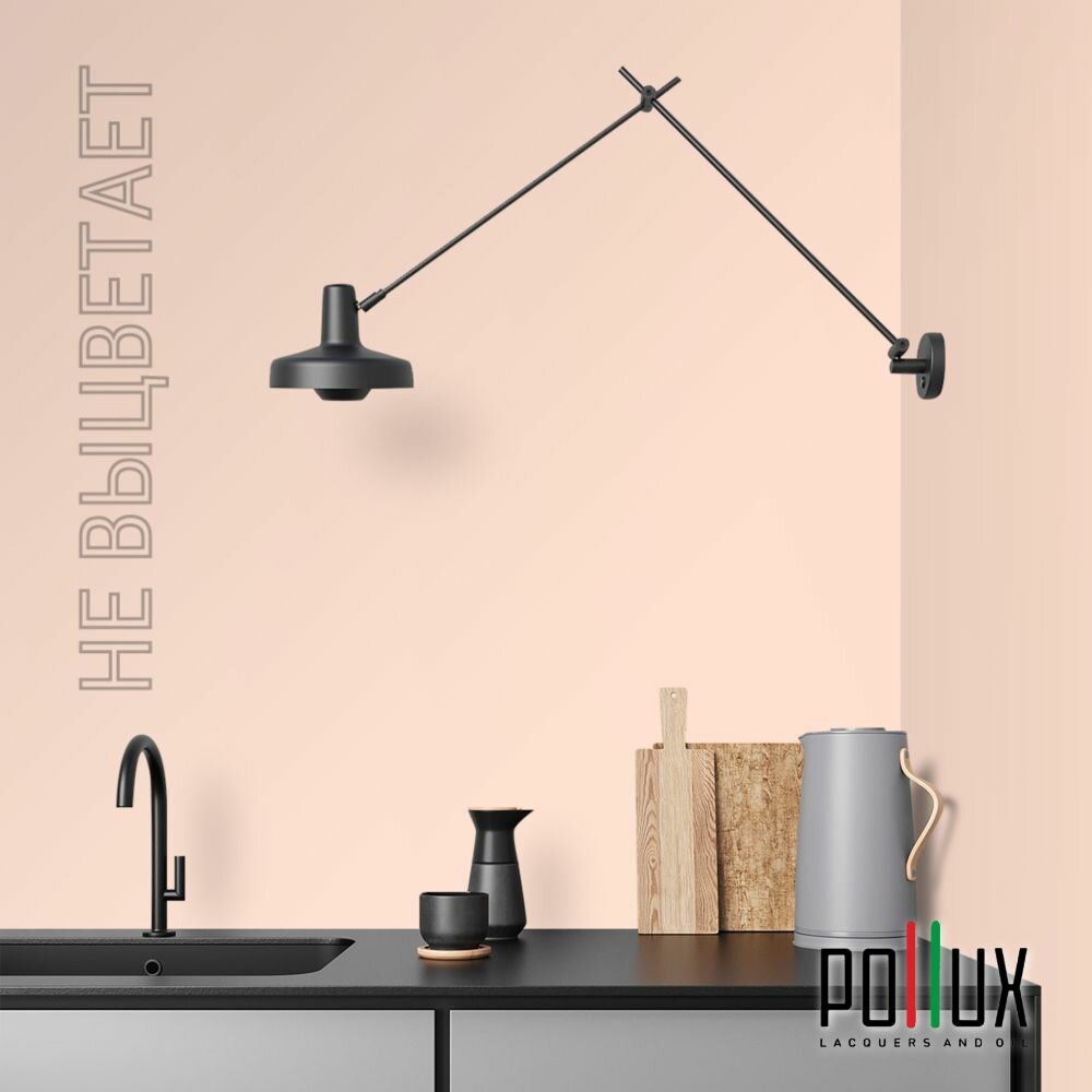 Краска моющаяся интерьерная для стен и потолков, Pollux INTERIOR без запаха, быстросохнущая, акриловая, матовое покрытие, цвет NCS S 5020-Y70R, 1л.