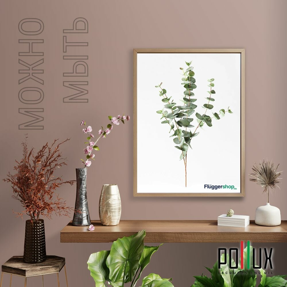 Краска моющаяся интерьерная для стен и потолков, Pollux INTERIOR без запаха, быстросохнущая, акриловая, матовое покрытие, цвет NCS S 8010-Y70R, 1л.